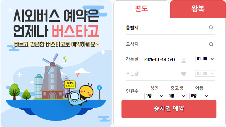 🎫 버스 승차권 예매하기를 통해 버스 시간표 조회하고 미리 자리 예매가 가능하며, 버스타고 앱/홈페이지에서 모든 내용을 확인 할 수 있습니다.